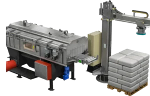 Our advanced automatic bag emptying machine uses cutting-edge automation technology to efficiently discharge materials from bags or sacks stacked on pallets. Automatic bag emptying machine is capable of handling full pallets with 25 kg bags, the machine uses a movable trolley to securely grab and thoroughly discharge each bag’s contents, achieving an impressive 99.9% effectiveness rate.